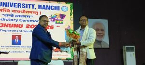 रांची यूनिवर्सिटी के कुलपति डॉक्टर धर्मेंद्र कुमार सिंह ने आर्यभट्ट ऑडिटोरियम रांची में यूथ फेस्टिवल2025-2026  की समापन में शामिल हुए| और उन्होंने संबोधन करते हुए कहा कि यह कार्यक्रम एजुकेशन का ही एक पाठ है और उन्होंने छात्रों को मोटिवेट करते हुए कार्यक्रम का सराहना किया कहा कि आज छात्र कॉलेज सिर्फ डिग्री लेने नहीं आते हैं बल्कि अन्य क्षेत्र में आगे बढ़ने के लिए अभिभावक स्वरूप शिक्षक से मार्गदर्शन लेने आते हैं,इसलिए टीचर्स से भी हम आग्रह करेंगे कि छात्रों को सही मार्गदर्शन दें।यूथ फेस्टिवल में भाग लेने वाले सभी अभ्यर्थियों को बधाई दिया,साथ ही विजेताओं को विशेष रूप से बधाई दिए,और जो उपविजेता हुए हैं उनको अमेरिका के मशहूर हास्य कलाकार चारलिन चोपडिन का उदाहरण देते हुए कहा- “जज भी फरफैक्ट नहीं होते हैं“,